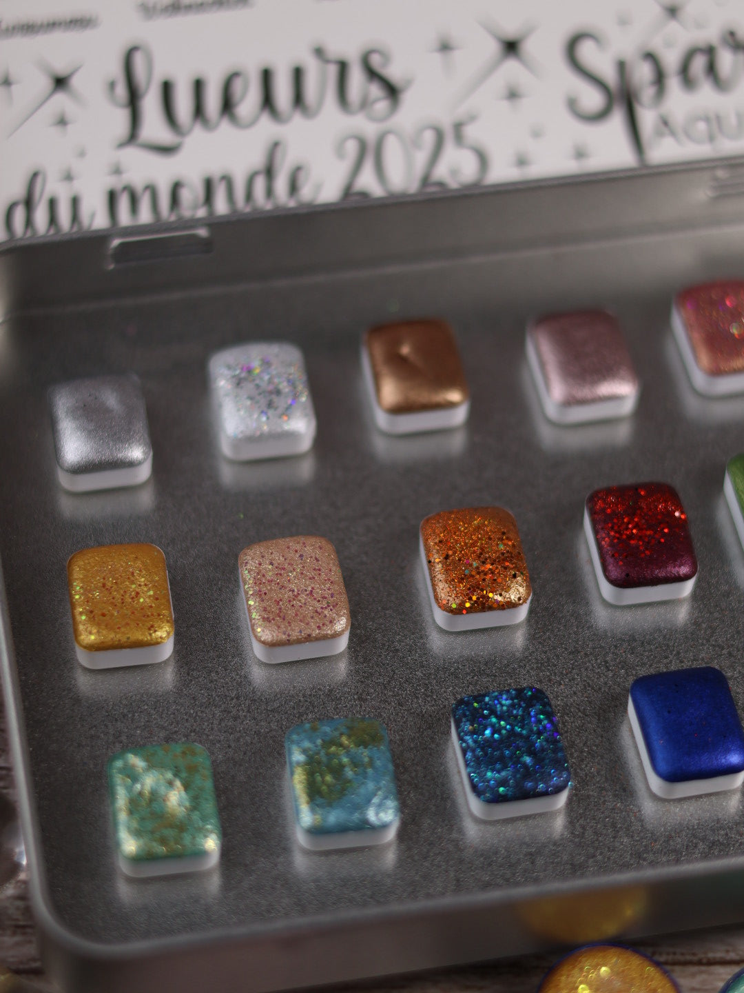 🎄✨ Boite Lueurs du monde – 18 godets d’aquarelle à effets | Noël 2025 | aquarelle métallisées et pailletées | aquarelle artisanat | cadeau Noël artiste peintre