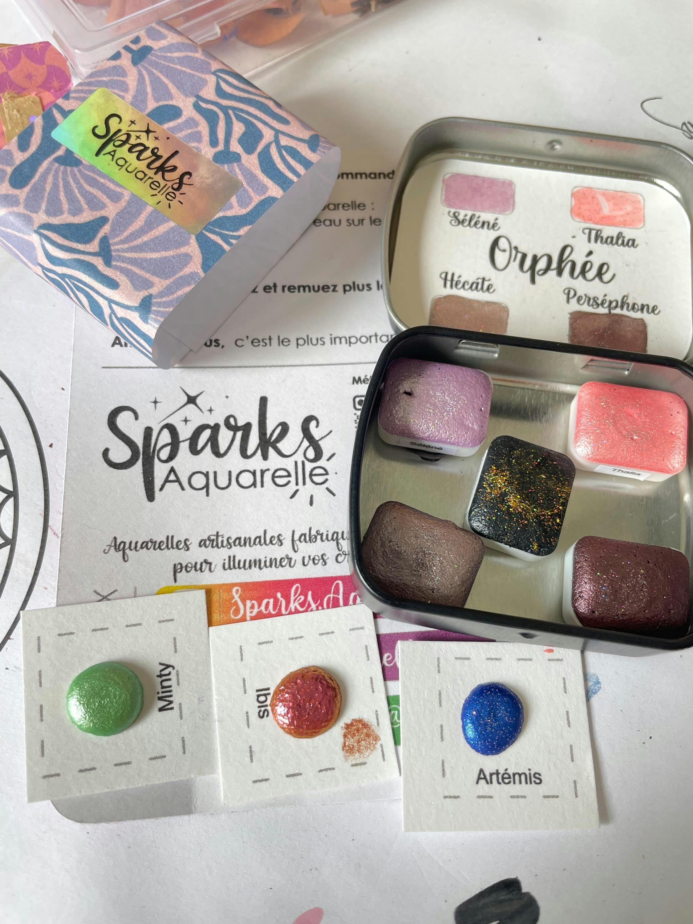 🎨 Palette Orphée – Aquarelles artisanales à paillettes