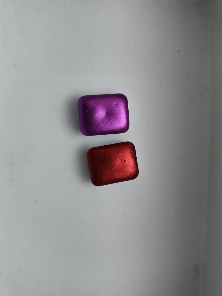 Aquarelles métallisées, scintillantes ou pailletées faites à la main, fabriquées à partir de pigments de mica de qualité cosmétique. * Mettez de l’eau sur les godets et attendez 3 ~ 5 minutes pour un meilleur rendu des couleurs. Taille des godets : Quart de godet : 1 ml - 1.5x1.9x0.5 cm Mini godet : 0.5 ml - 1.5x1.1x0.5 cm. NB*: Pendant la fabrication, il peut y avoir des imperfections mineures telles que des bulles ou des fissures, celles-ci font partie du processus et n’entravent pas la qualité ou l’utilisation du produit. J’ai essayé de représenter les produits aussi précisément que possible, mais les couleurs sur les écrans et les mobiles peuvent varier. Notez également que tous les matériaux d’arts / décoratifs montrés sur les photos sont utilisés uniquement à des fins décoratives et ne sont pas inclus. Utilisation des produits : Nos aquarelles ne sont pas des produits classiques et doivent être utilisées différemment. Elles aiment être utilisées avec délicatesse pour en obtenir le meilleur. Visualiser le tutoriel sur notre Instagram « Utilisation » et prenez le temps de faire quelques essais avant de vous lancer dans vos créations pour vous familiariser avec votre nouvelle aquarelle. Les aquarelles caméléons : Pour un résultat optimal, je recommande de les utiliser sur du papier noir ou une couleur foncée et une surface suffisamment longue pour observer l’effet caméléon. Sur papier blanc le rendu est différent. Les chromes : Ils ne nécessitent qu'une couche sur papier noir mais plutôt deux sur papier blanc pour une intensité maximale. Note de la fée paillettes ✨ :Il arrive que certaines couleurs Velvets se décollent légèrement du godet en séchant — une petite coquetterie naturelle de l’aquarelle artisanale ! Rien de grave : un petit point de colle suffit à la remettre en place. Cela n’altère en rien la magie de vos créations. 🌸