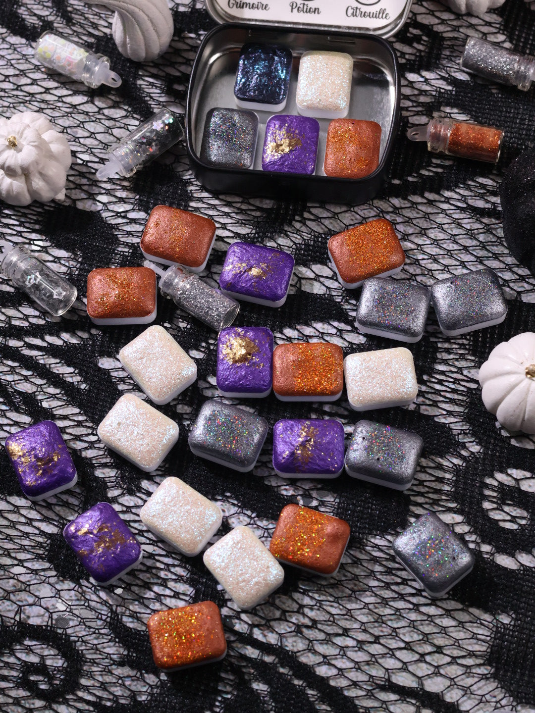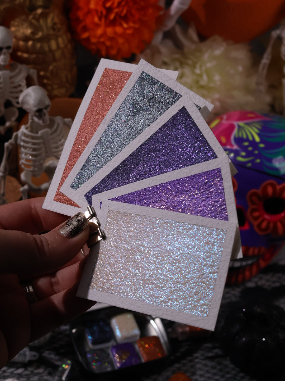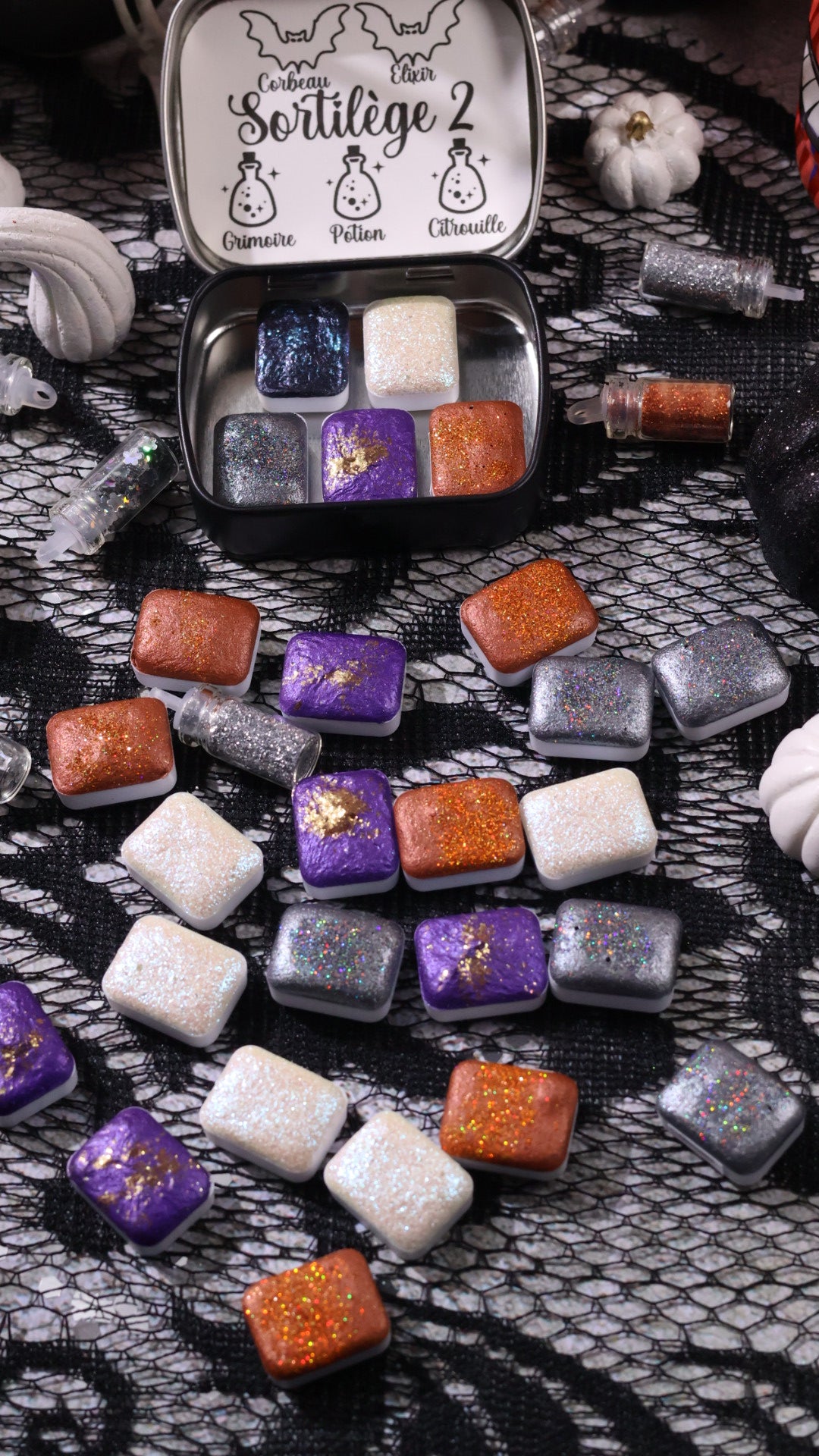 Sortilège 2 - 5 aquarelles à effets | aquarelle caméléons | aquarelles métallisées et pailletées | artisanat