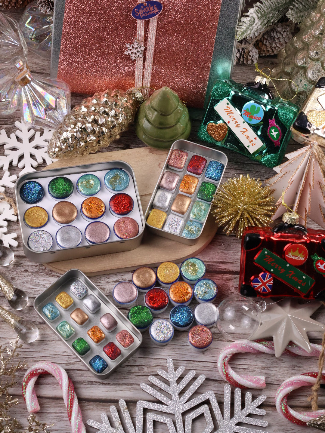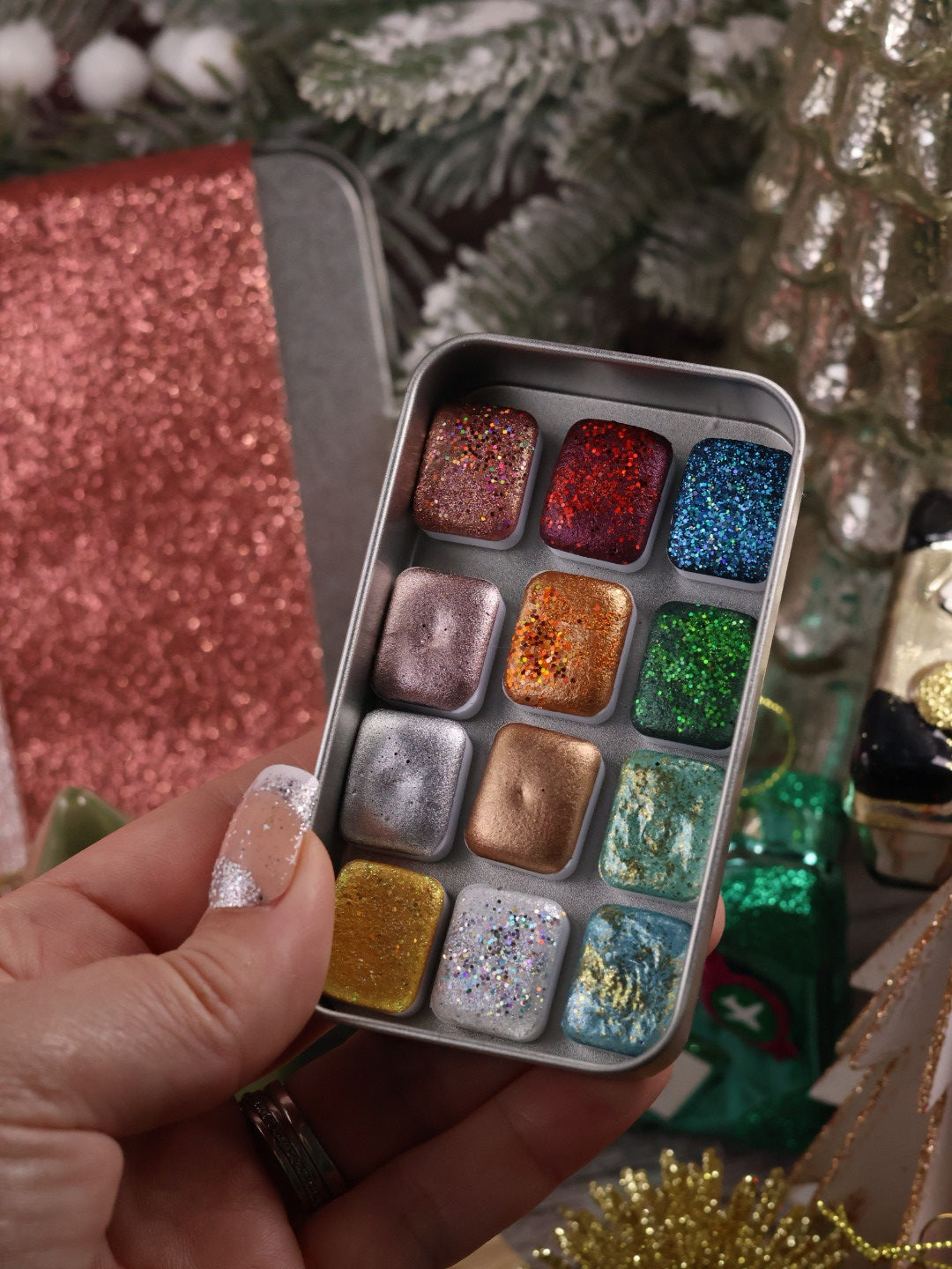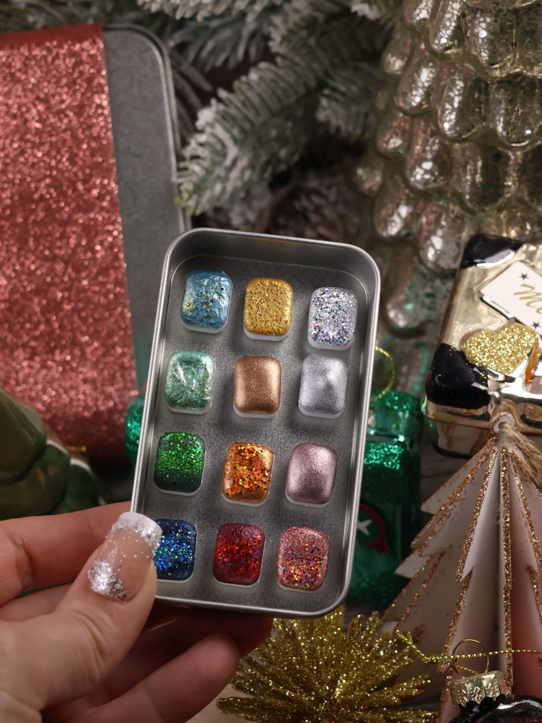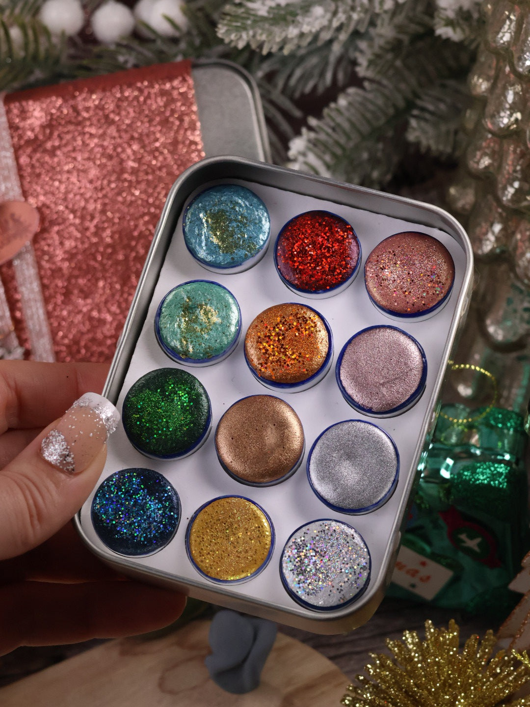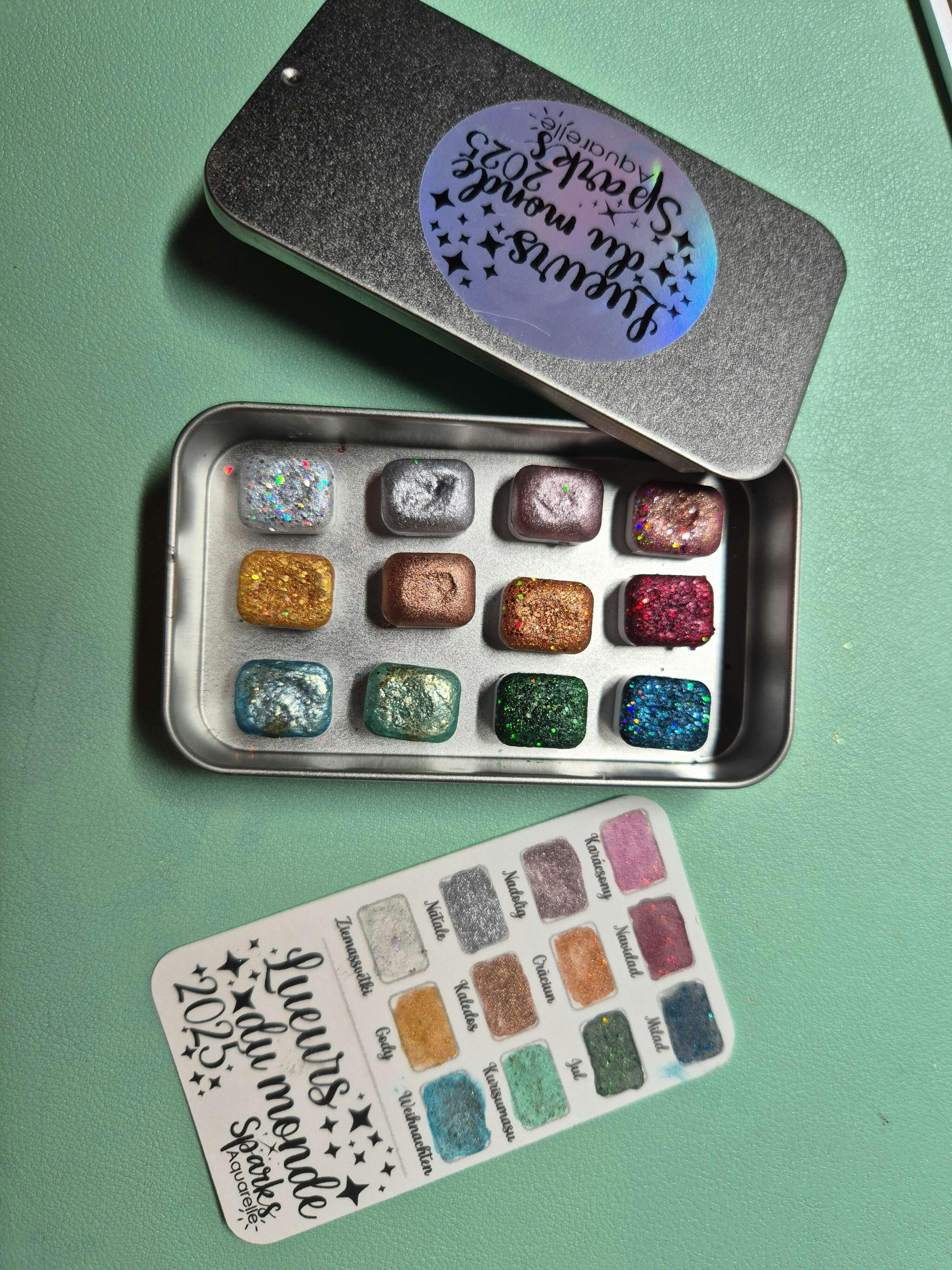 🎄✨ Lueurs du monde – 12 godets d’aquarelle à effets | Noël 2025 | aquarelle métallisées et pailletées | aquarelle artisanat | cadeau Noël artiste peintre